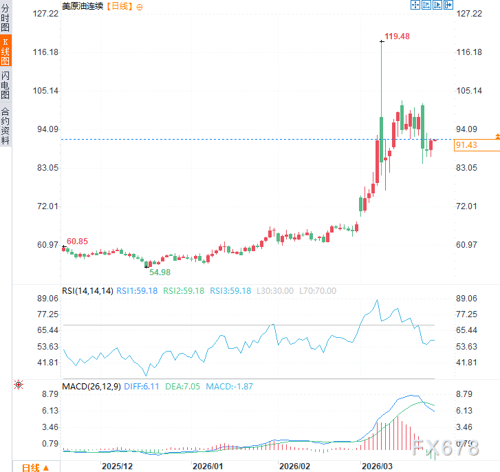 周四(3月26日)亚市时段,美原油价格震荡走强,延续前一交易日涨势,现交投于每桶91.40美元附近,日内涨幅约1.2%,投资者对伊朗拒绝与美国直接谈判的表态重燃供应中断担忧。伊朗外交部长阿巴斯·阿拉格奇周三对国家媒体表示,伊朗无意与美国举行直接谈判,尽管最高当局正在审查美国提出的结束战争方案。霍尔木兹海峡航运持续受阻,全球能源供应紧张预期推动油价反弹。